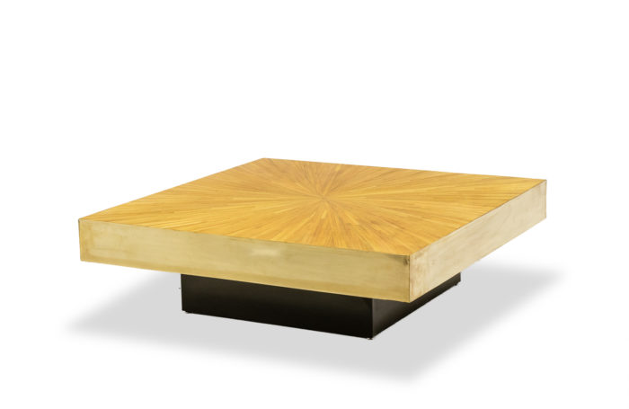 Coffee table in straw marquetry and brass. 20th century