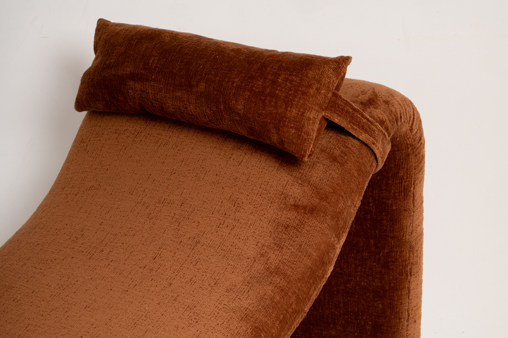Chaise longue modèle « Djinn » de forme ergonomique en tissu de couleur chocolat.